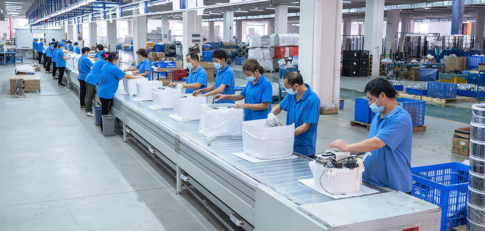 10萬㎡大型生產基地,26臺注塑機,1條噴涂機器人涂裝生產線,4條機器人沖壓自動化生產線和3條組裝線 ,月產量高達50000臺